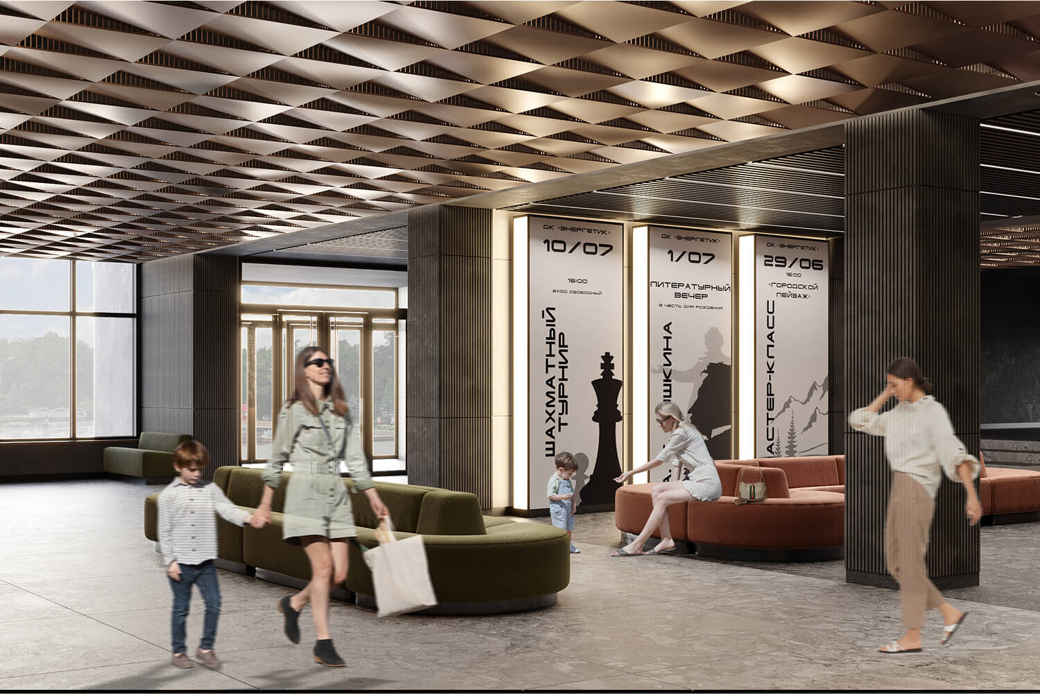 Каждая зона была переосмыслена как пространство для взаимодействия, ожидания, обучения и вдохновения. Мы заложили атмосферу, в которой посетители смогут не только проводить время, но и получать культурный и эмоциональный опыт.