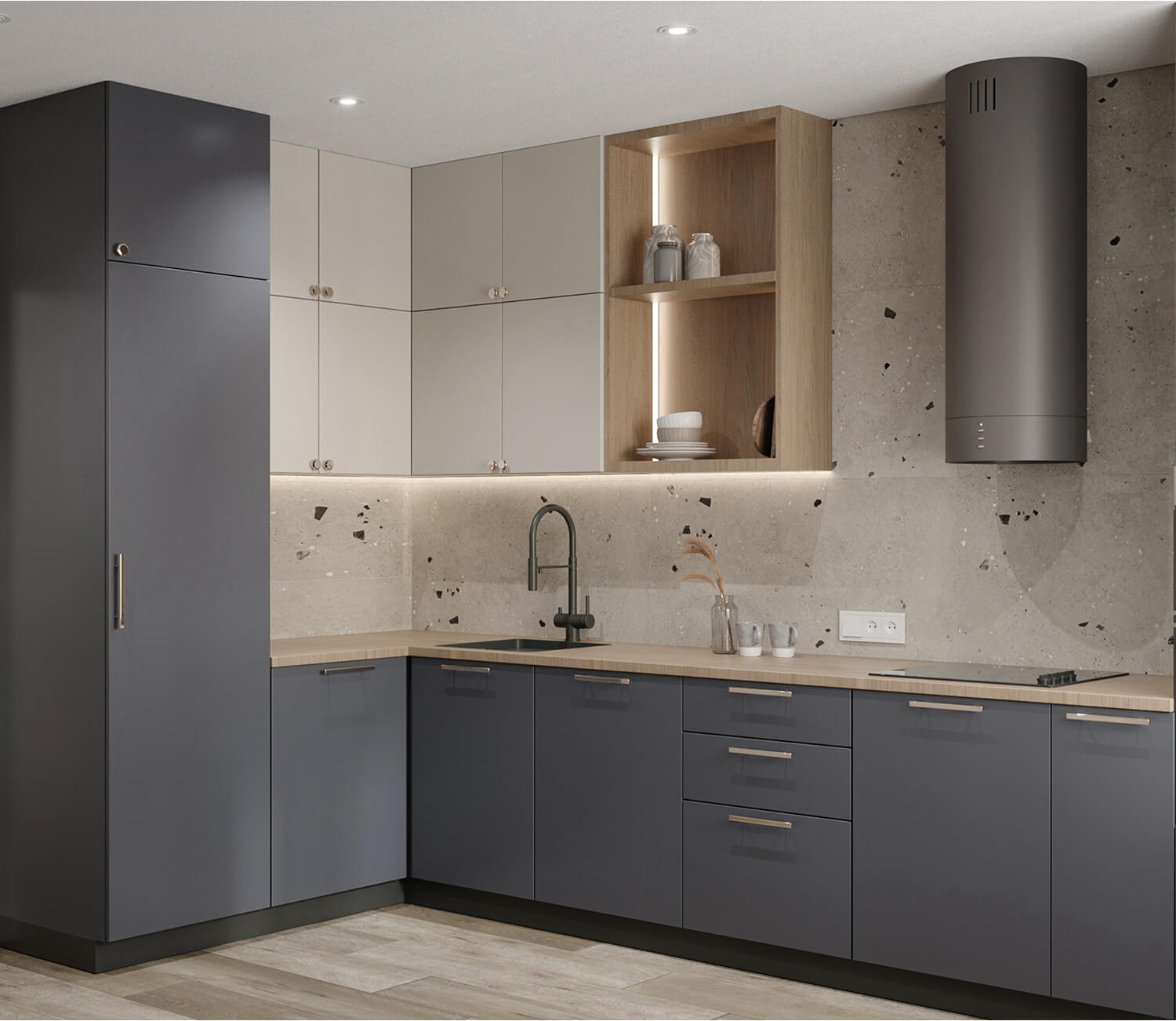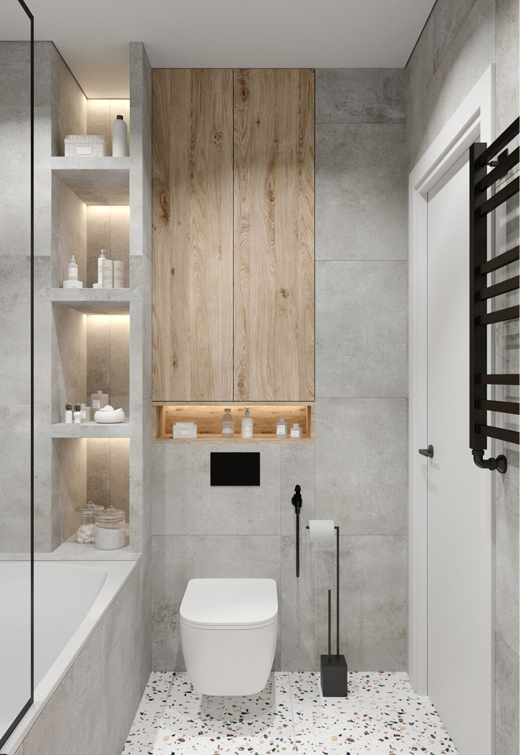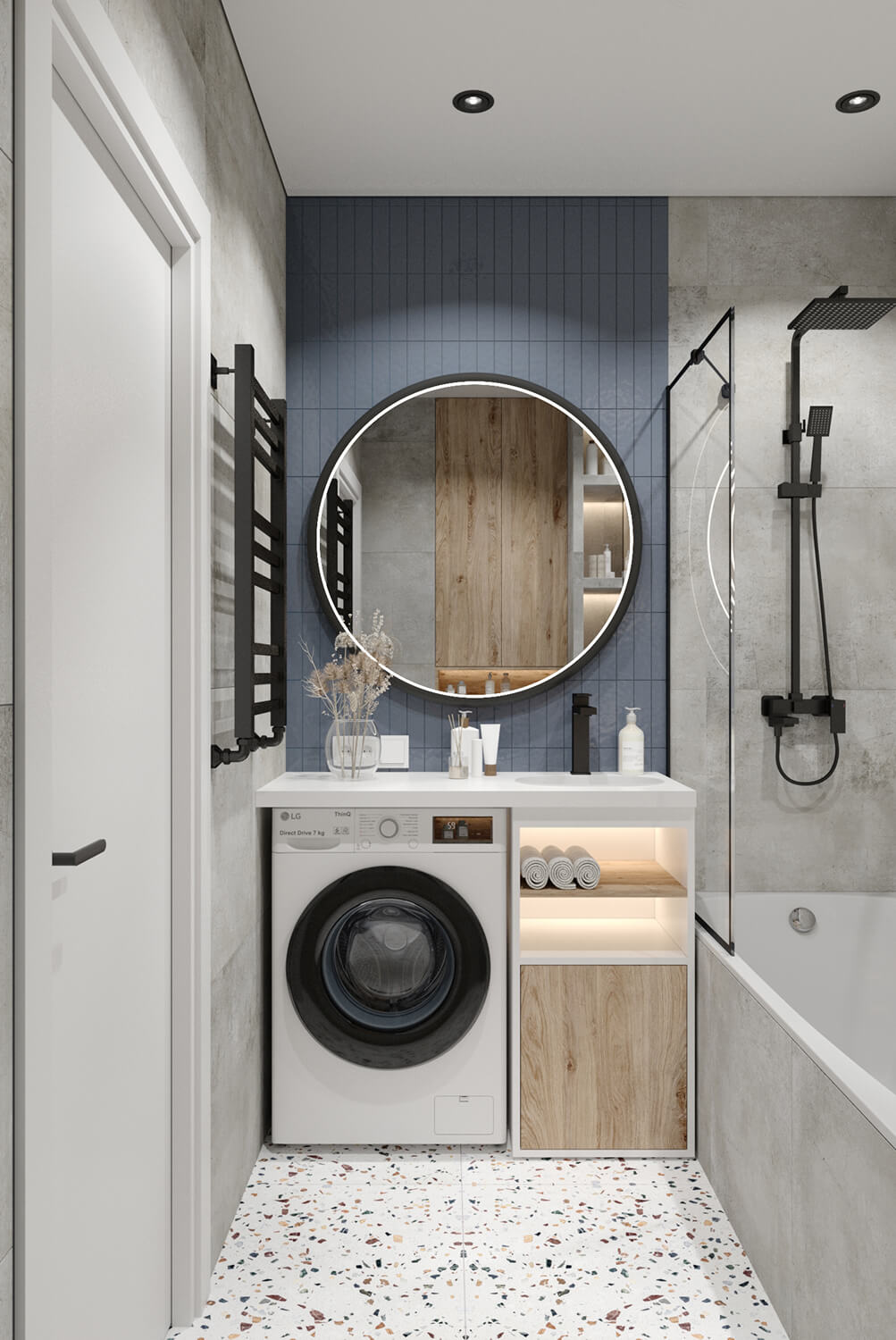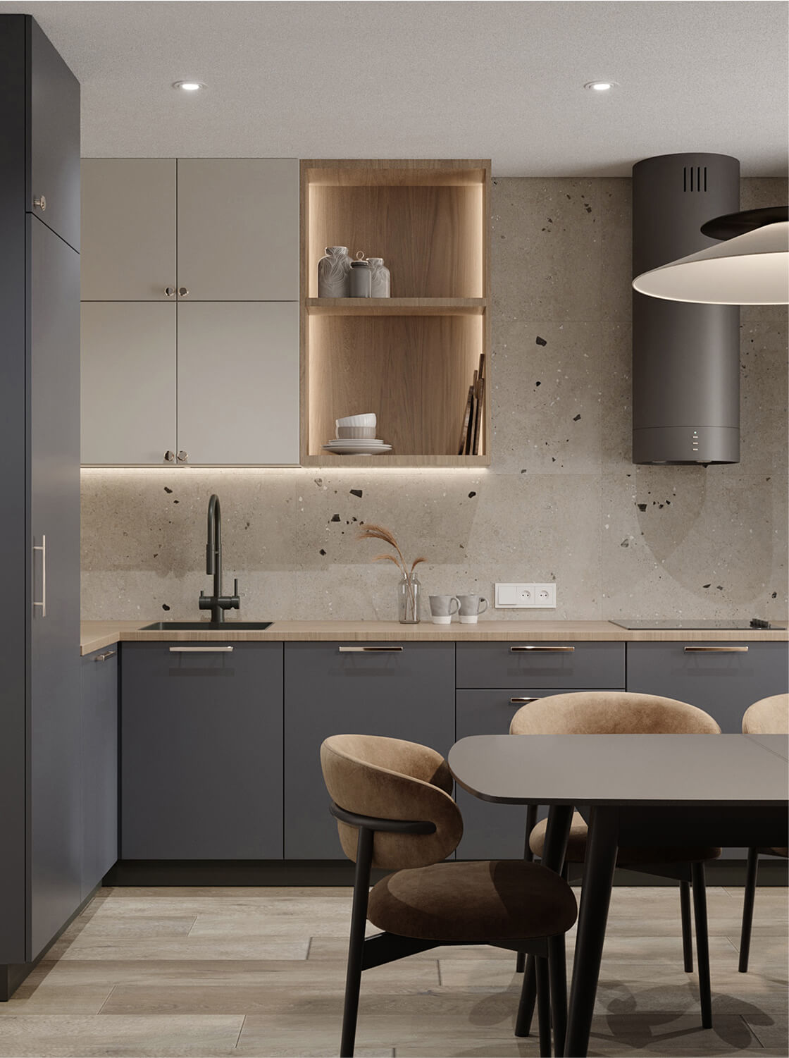 Проект реализован в рамках ограниченного бюджета, поэтому особое внимание уделено подбору доступных, но эстетичных материалов и решений. Мы использовали качественные, долговечные покрытия и серийную мебель, не в ущерб стилю и восприятию пространства.